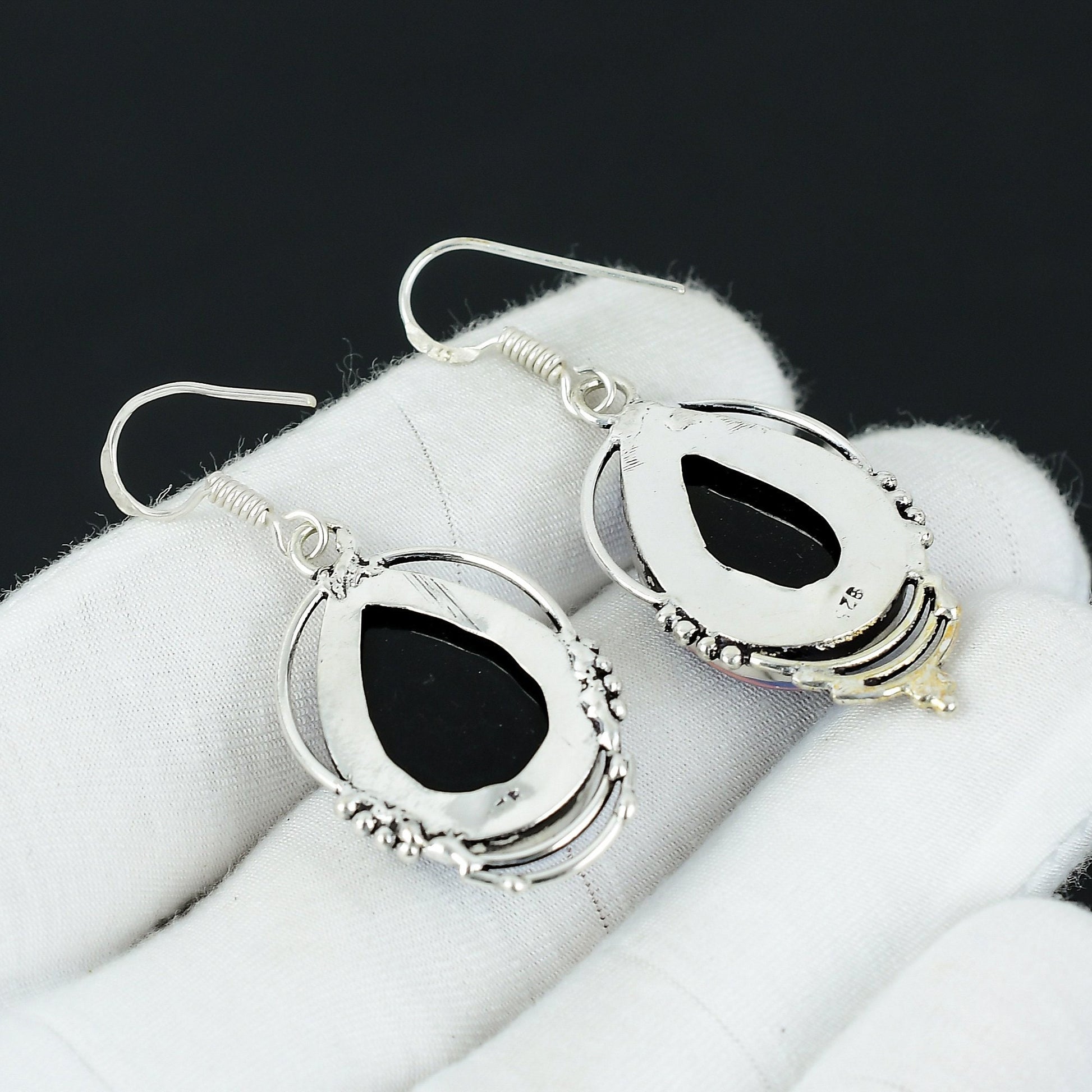 Elevate your style with these mesmerizing earrings, showcasing stunning teardrop-shaped stones embedded in a sophisticated silver setting.