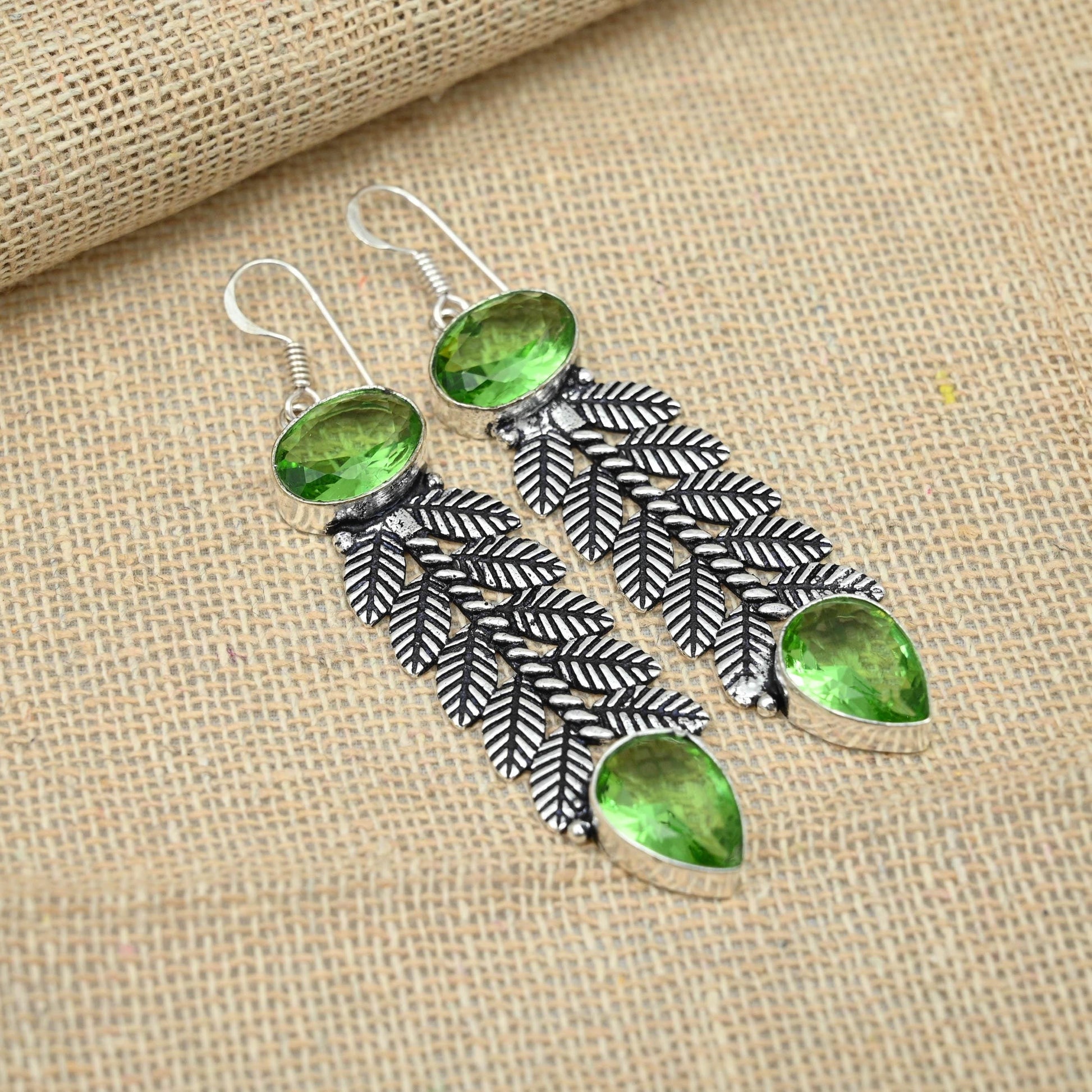 Embrace the elegance of nature with these stunning leaf motif earrings. Designed with intricate detailing, these earrings feature vibrant green gemstones that capture light and add a touch of glamour to any outfit.