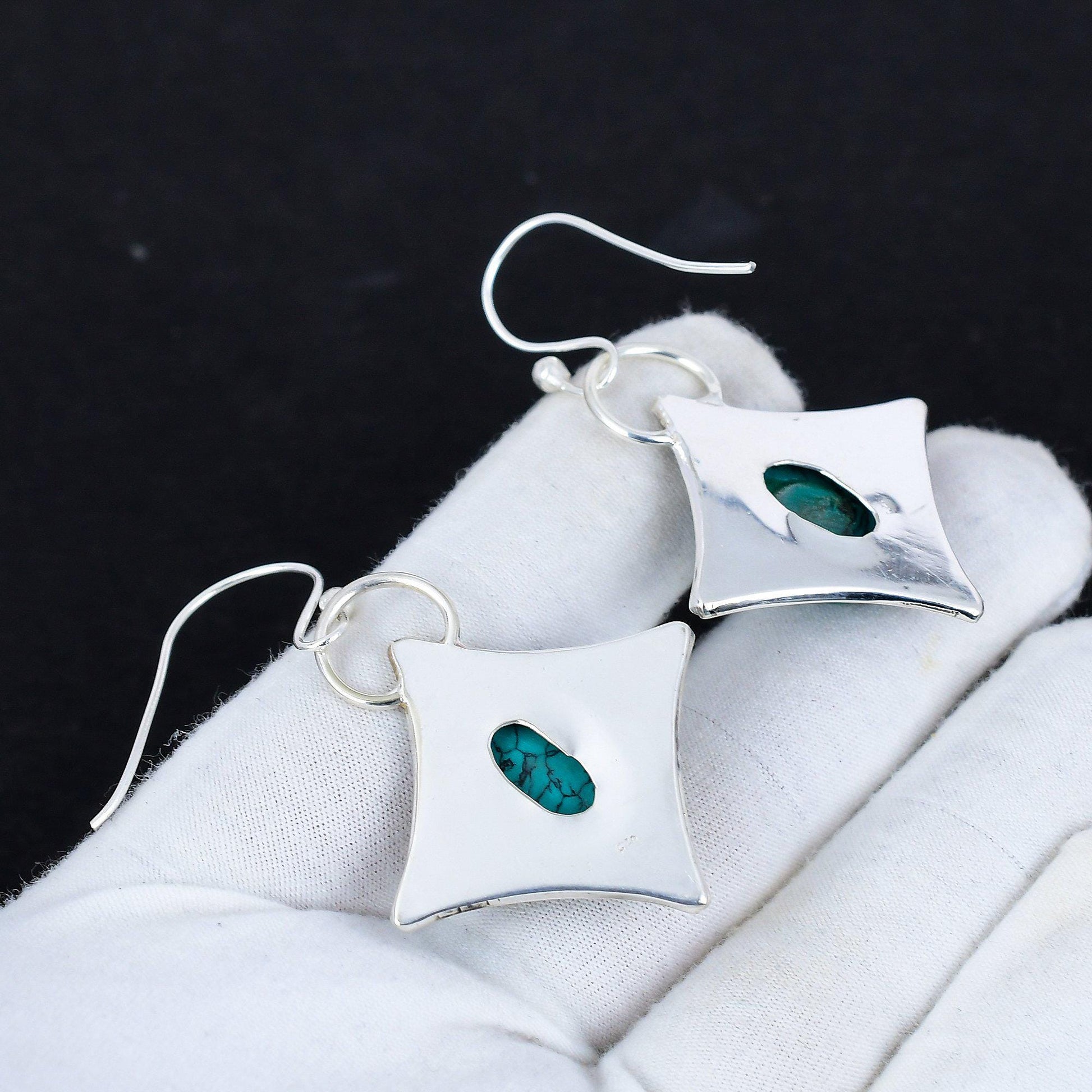 Design: These earrings feature a unique square shape adorned with intricate silver detailing, embracing a vibrant turquoise stone at the center. Delicate beading and a subtle oxidized finish add to their charm, ensuring an eye-catching appeal.
