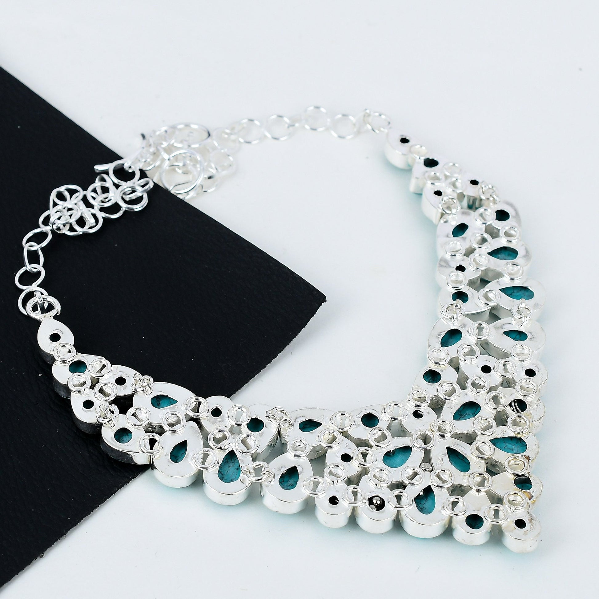 Design: This stunning necklace features an array of vibrant, teardrop-shaped turquoise stones, artfully arranged to create a captivating display.