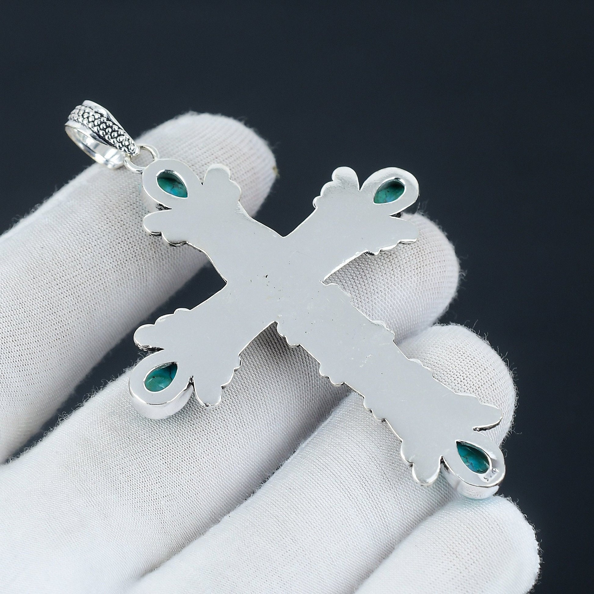 Embrace timeless elegance with our exquisite Silver Cross Pendant, adorned with striking turquoise gemstones.
