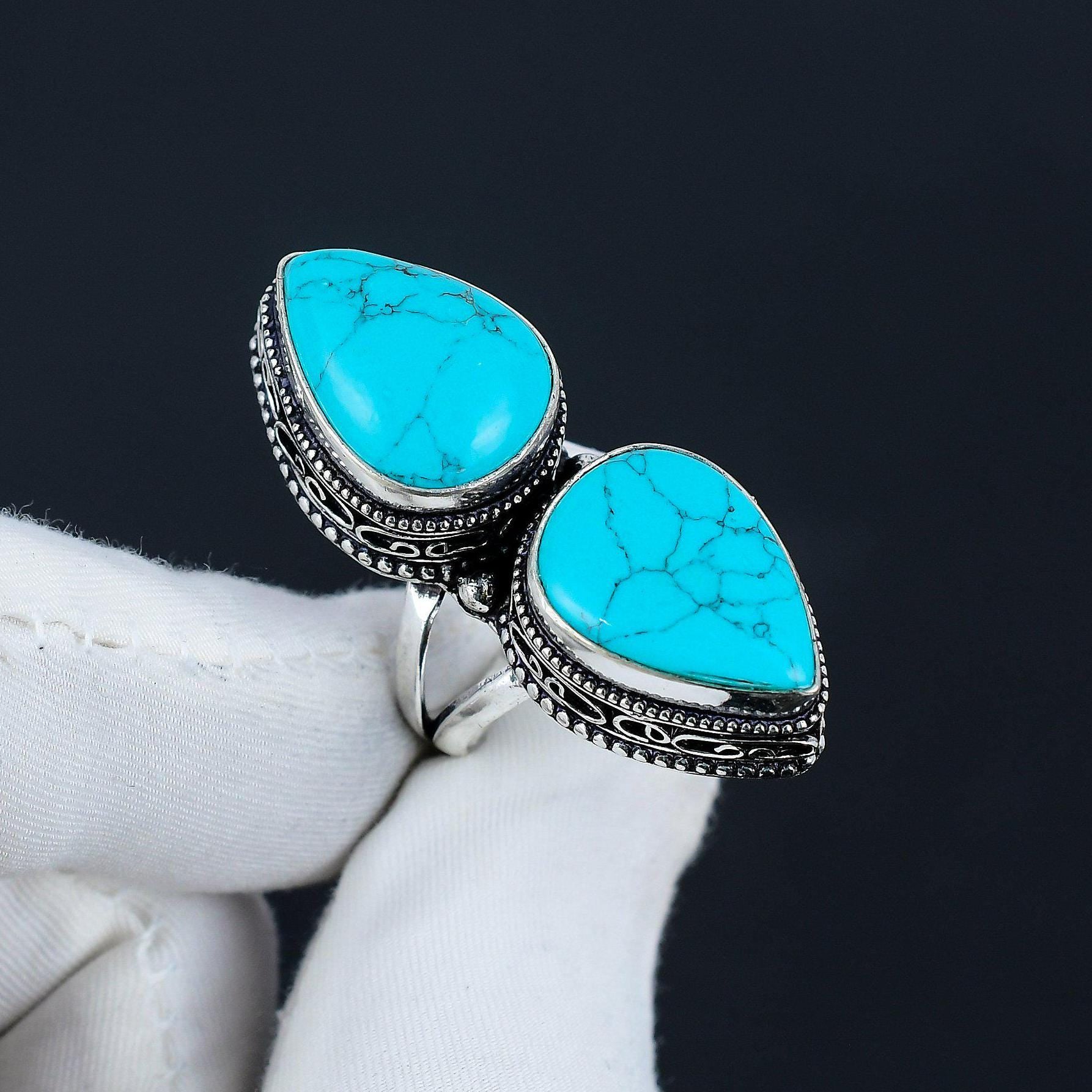 - Double teardrop-shaped turquoise stones