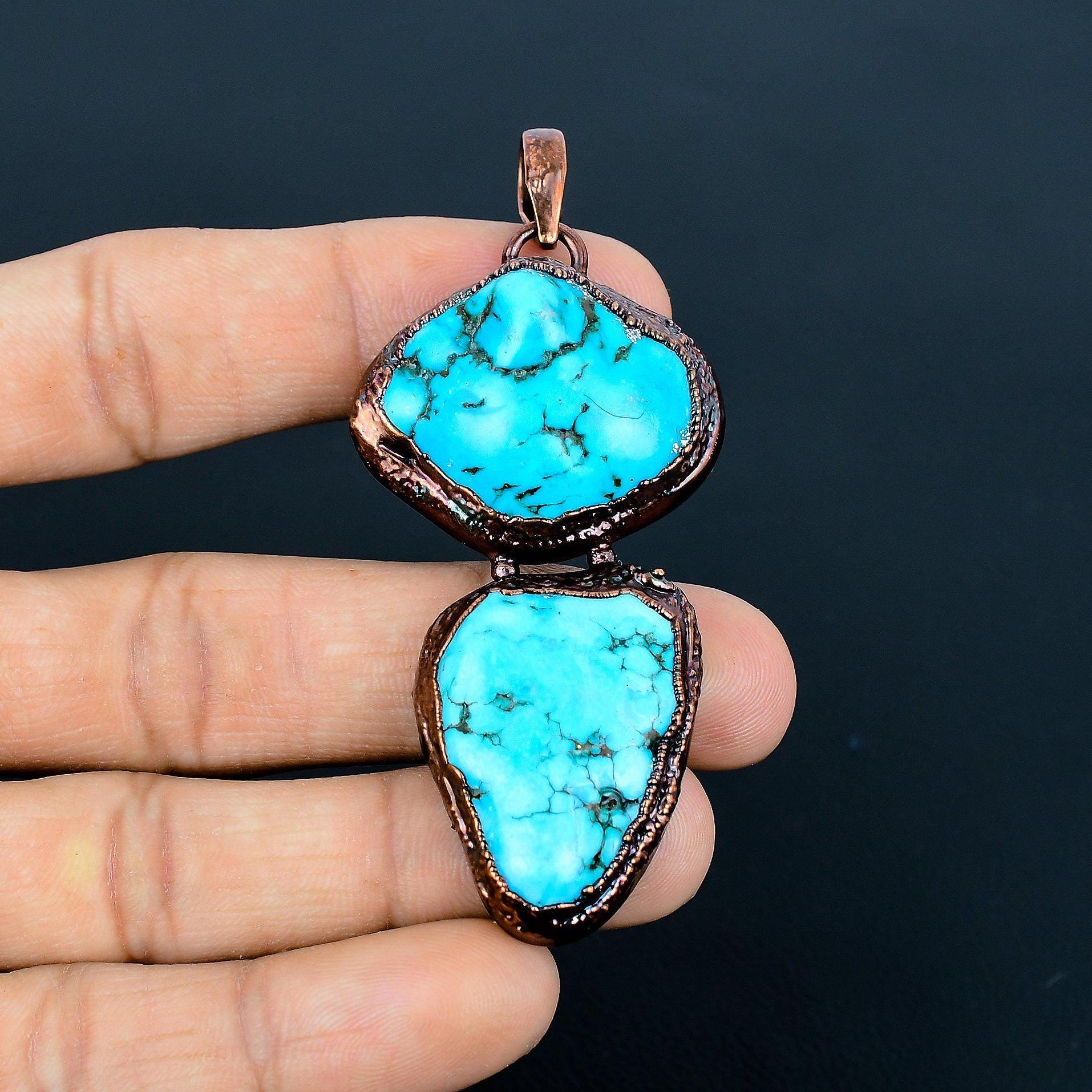 Discover timeless elegance with our handcrafted copper and turquoise pendant.