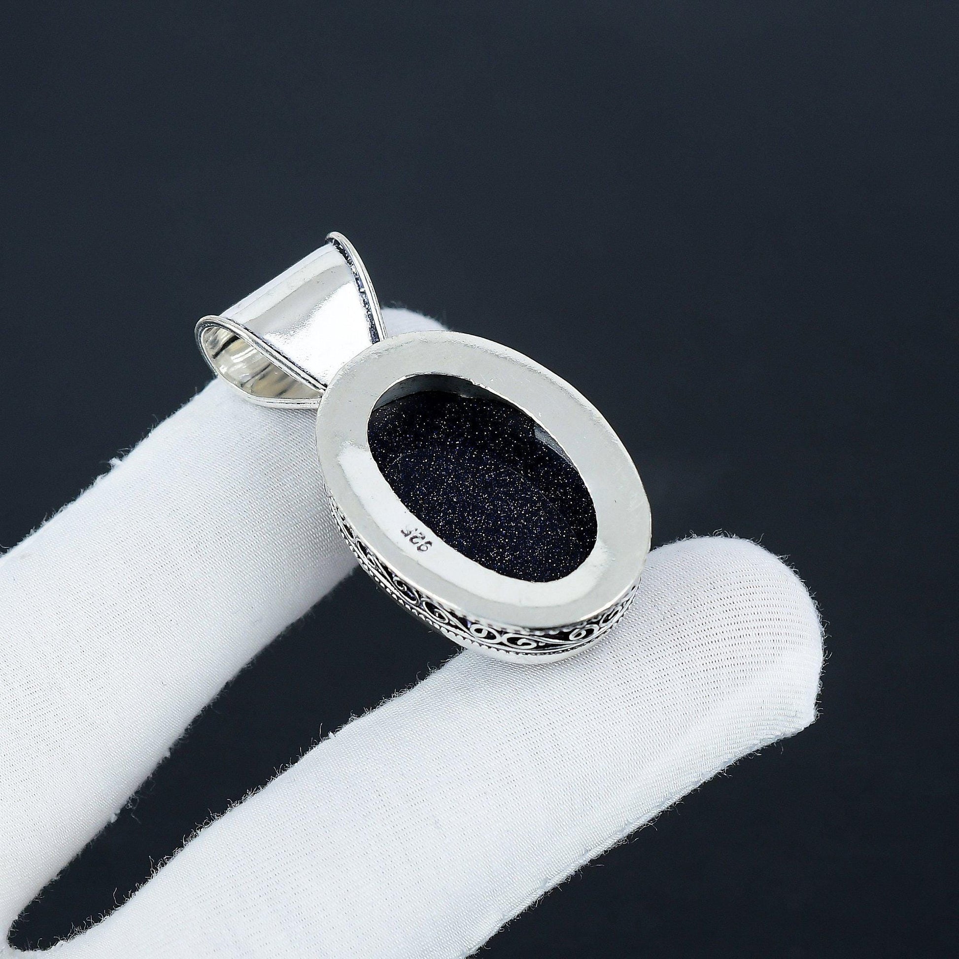 Discover the enchanting allure of our handcrafted pendant, featuring a captivating midnight blue gemstone adorned with shimmering specks. Set in elegant sterling silver, this piece exudes timeless sophistication.