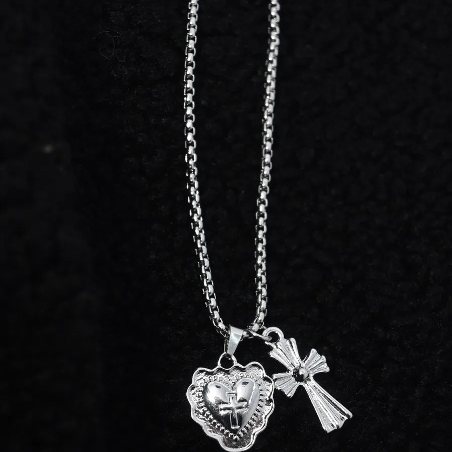 This timeless piece features a beautifully detailed heart charm complemented by a classic cross, both crafted with precision to elevate any outfit.
