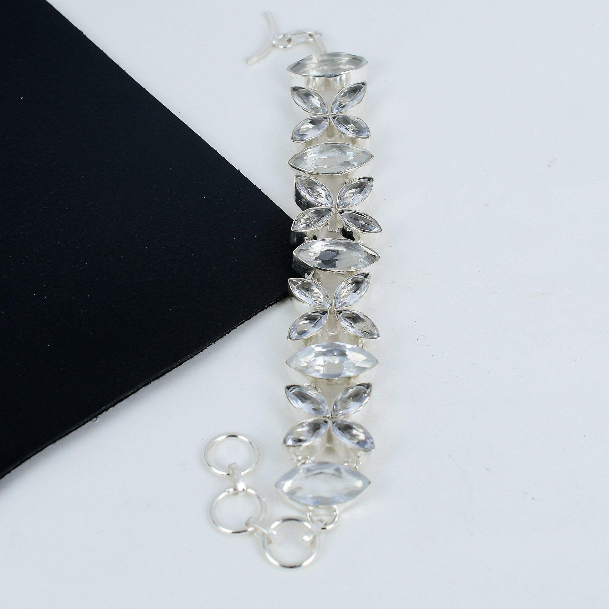Elevate your elegance with this stunning silver bracelet, featuring a captivating array of marquise-cut crystals, each meticulously set to sparkle with every move.