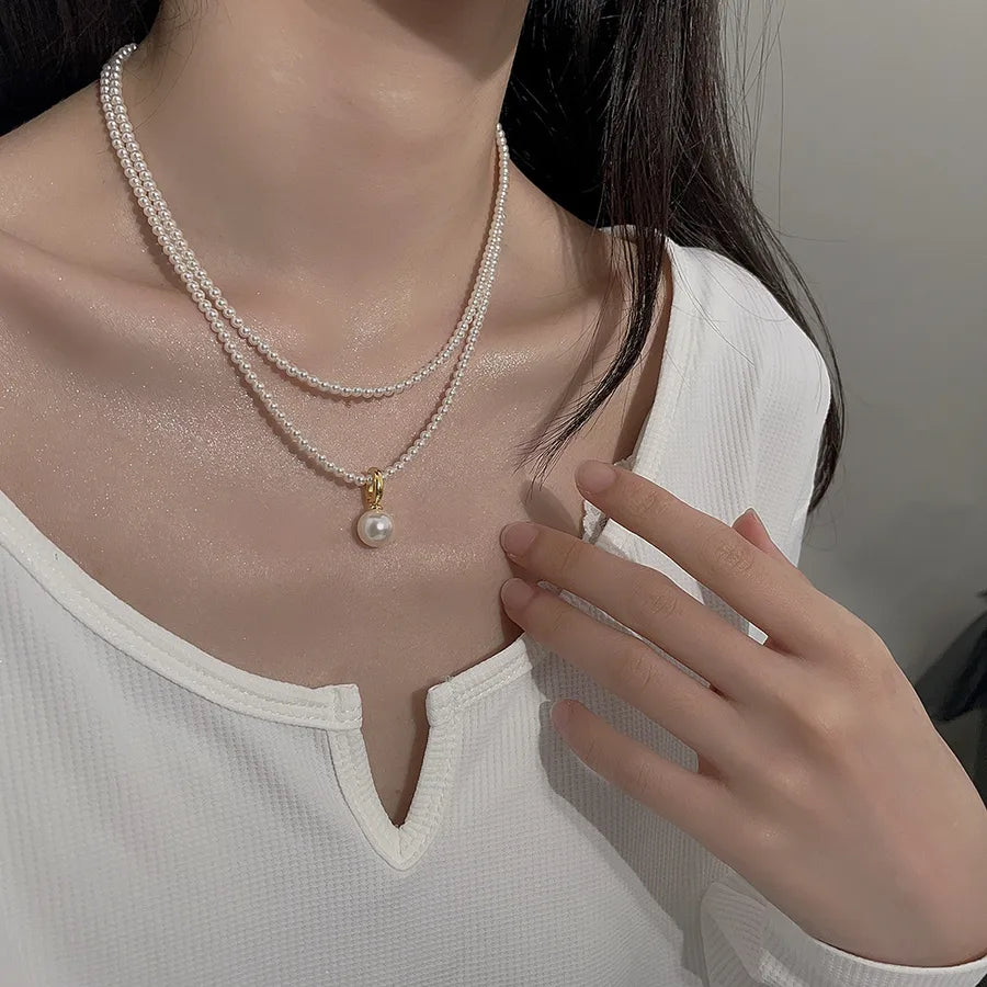 Elevate your elegance with this exquisite layered pearl necklace, designed to complement any ensemble.