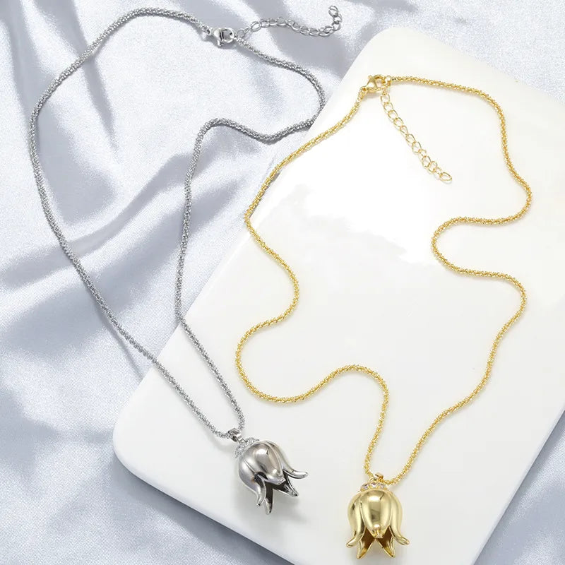 Whether you're dressing up for a special event or adding a hint of luxury to your everyday look, this Two-Tone Tulip Pendant Necklace set offers versatility and timeless style. Discover the perfect balance of modern aesthetics and classic charm.