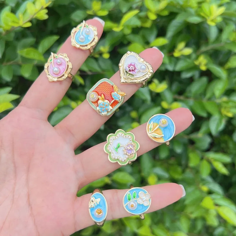 Indulge in elegance with our exquisite collection of art enamel rings, perfect for adding a touch of sophistication to any outfit.