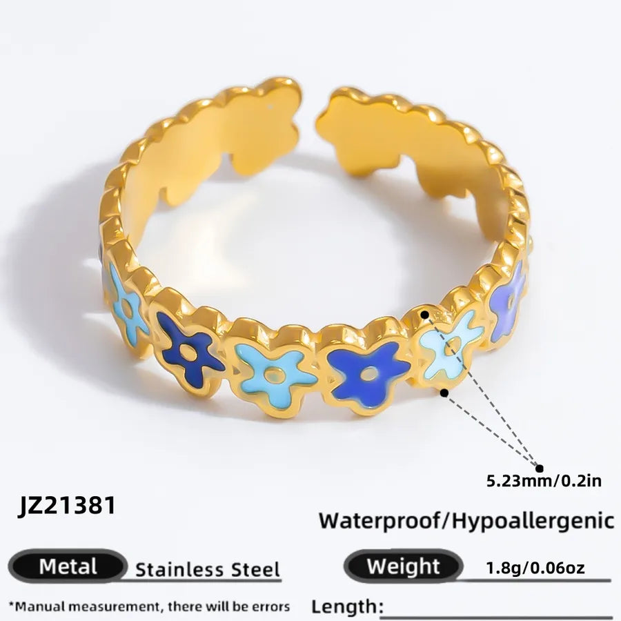 Embrace elegance and style with our exquisite collection of adjustable gold-plated rings. Each piece showcases a vibrant array of colors and patterns, expertly designed to add a touch of glamour to any outfit.