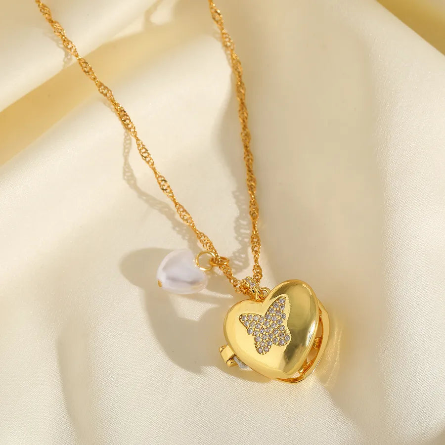 Indulge in elegance with our exquisite Butterfly Heart Locket Necklace.