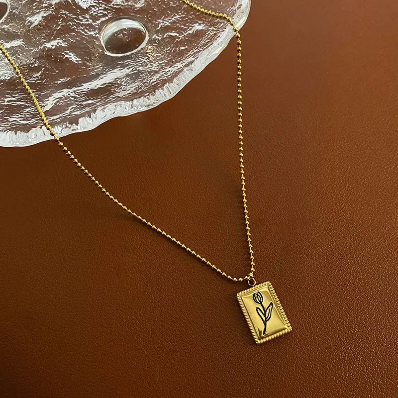 Embrace elegance with our exquisite gold-plated pendant necklace, featuring a delicate floral engraving.