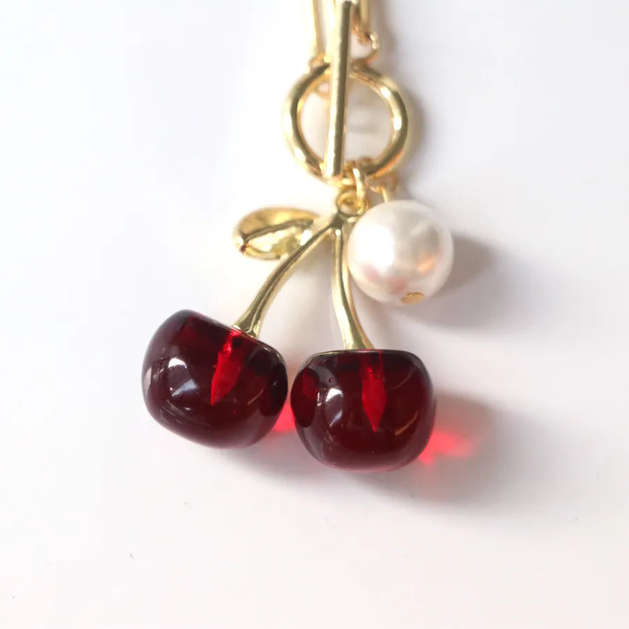 - Vibrant Design: Features two enchanting cherry pendants in rich red and soft pink hues.