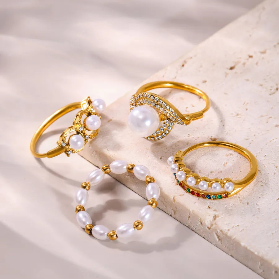 Embrace the charm and sophistication of our gold-plated pearl rings set and elevate your jewelry collection today.