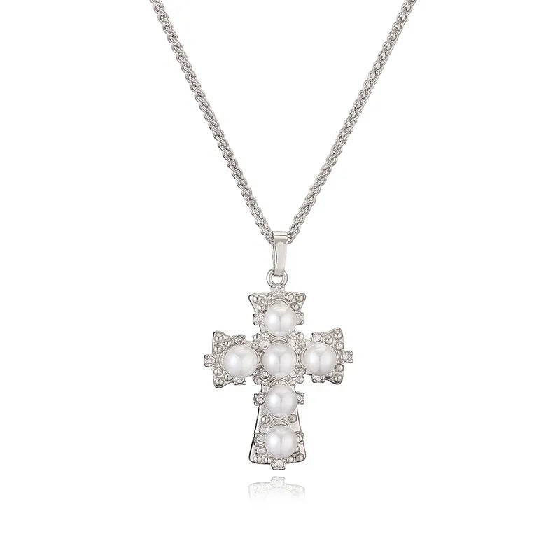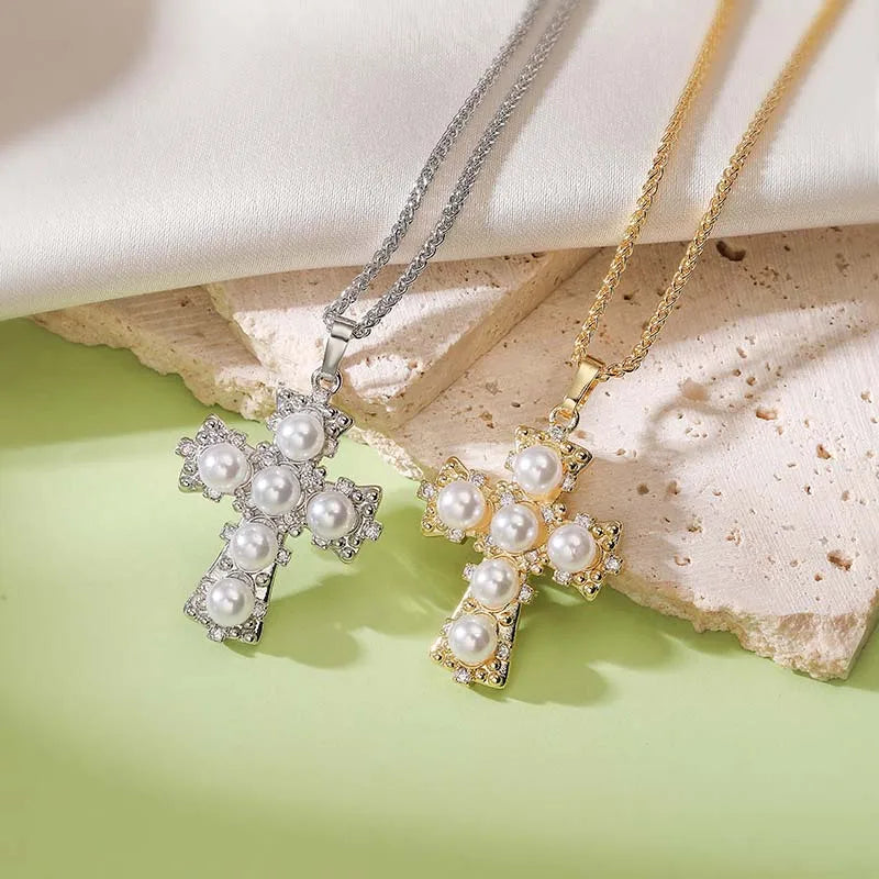 Each pendant is crafted in the shape of a cross and adorned with beautiful pearls that offer a classic touch.