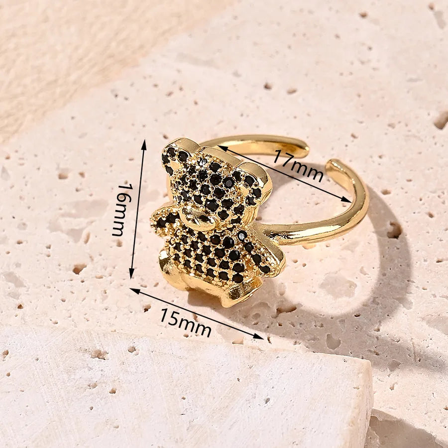 Each ring showcases a cute bear cub motif, encrusted with sparkling crystals that catch the light brilliantly, ensuring a dazzling effect.