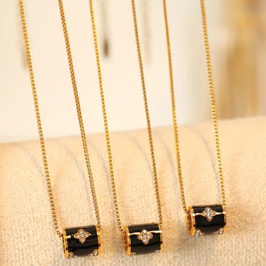 Introducing our exquisite Black Enamel Cylinder Pendant Necklace, a harmonious blend of elegance and modern charm.