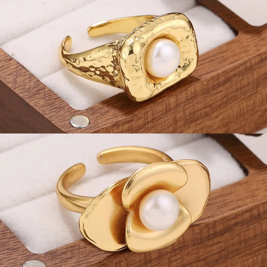 Discover timeless elegance with our exquisite Gold Pearl Statement Ring Set. Each ring, crafted in high-quality gold plating, features a lustrous pearl centerpiece that exudes sophistication and grace.