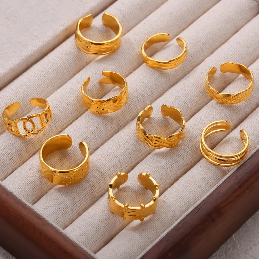 Enhance your elegance with our exquisite collection of open-band gold rings, featuring intricate designs to suit any style.