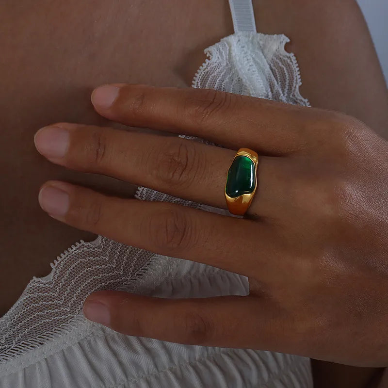 Design: Crafted with precision, each ring features a sleek band available in two distinct colors—luxurious gold and sophisticated silver. The centerpiece is an enchanting green jade stone, known for its timeless beauty and spiritual significance.