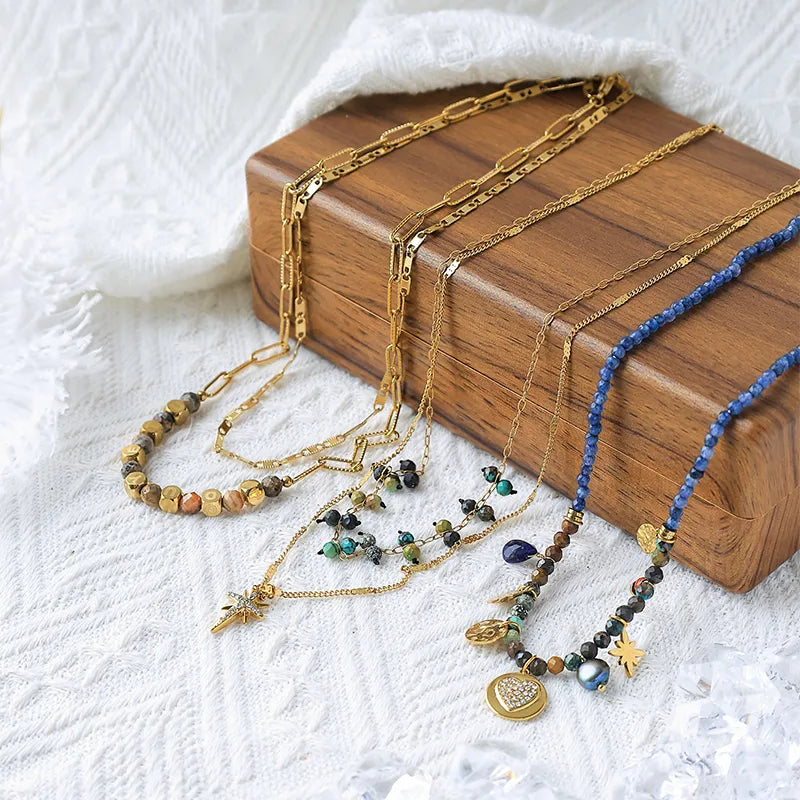 - Unique designs include a blend of natural stones and vibrant hues.