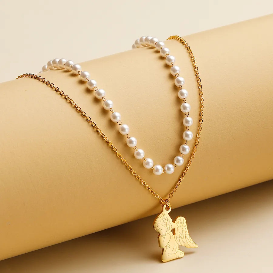 This exquisite piece combines timeless elegance with modern sophistication. It features a delicate string of lustrous pearls, perfectly complementing the rich gold chain adorned with a classic cross pendant.