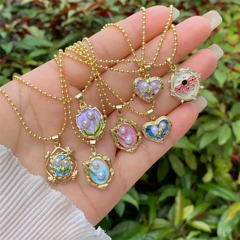 Indulge in elegance with our stunning collection of vintage-inspired enamel flower necklaces.