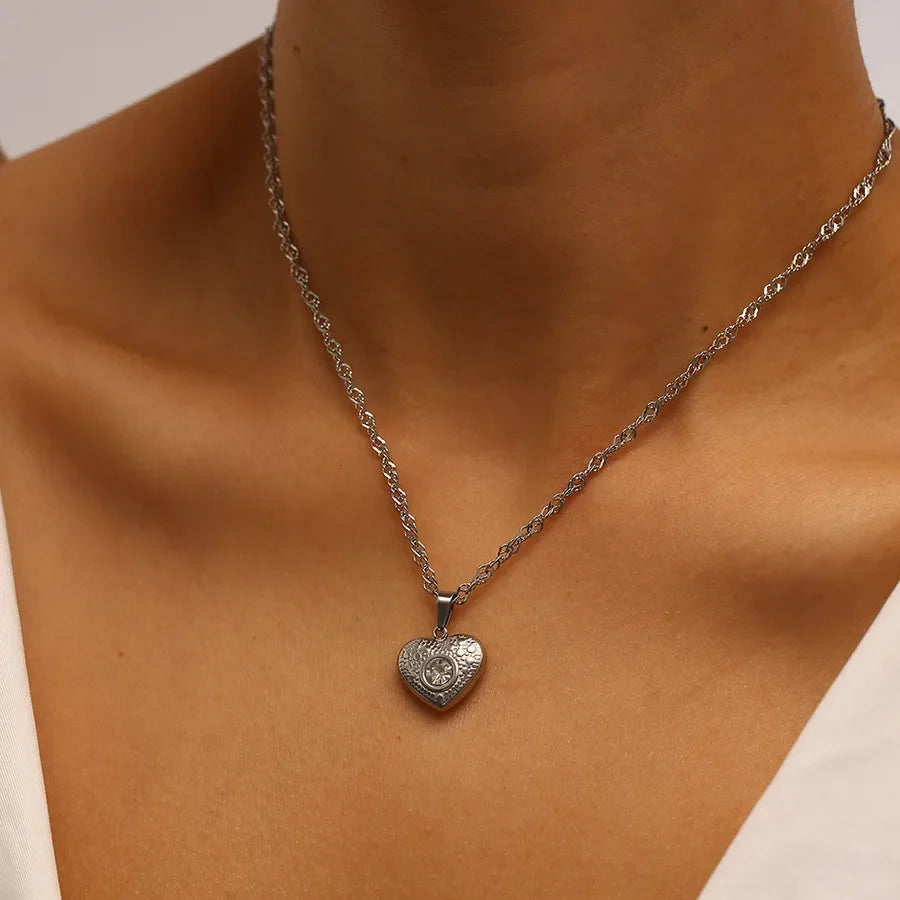 Crafted with meticulous attention to detail, this necklace features a delicate gold chain that gracefully complements the intricate heart-shaped pendant.