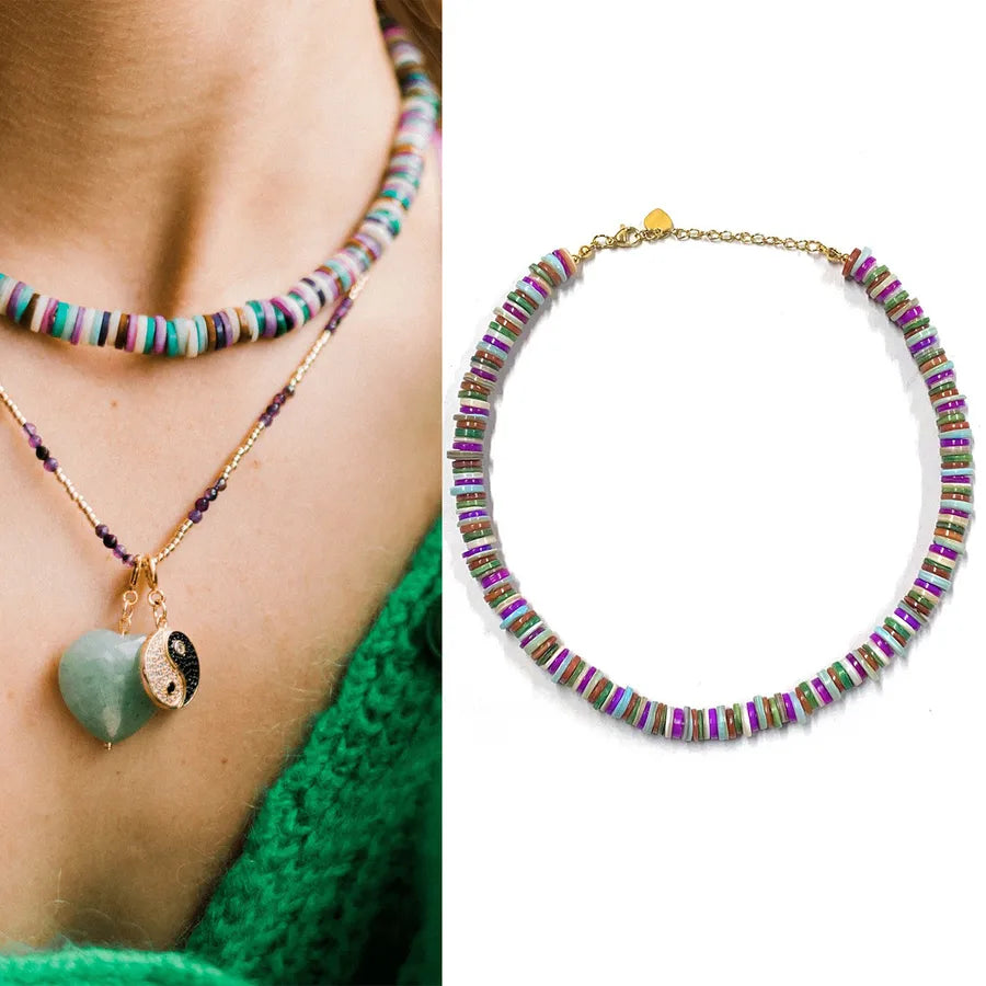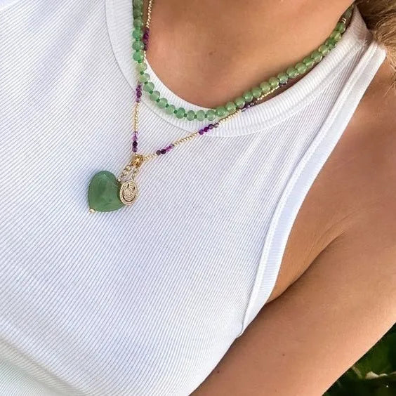 - Elegant green beads paired with deep purple accents for a modern, vibrant look.