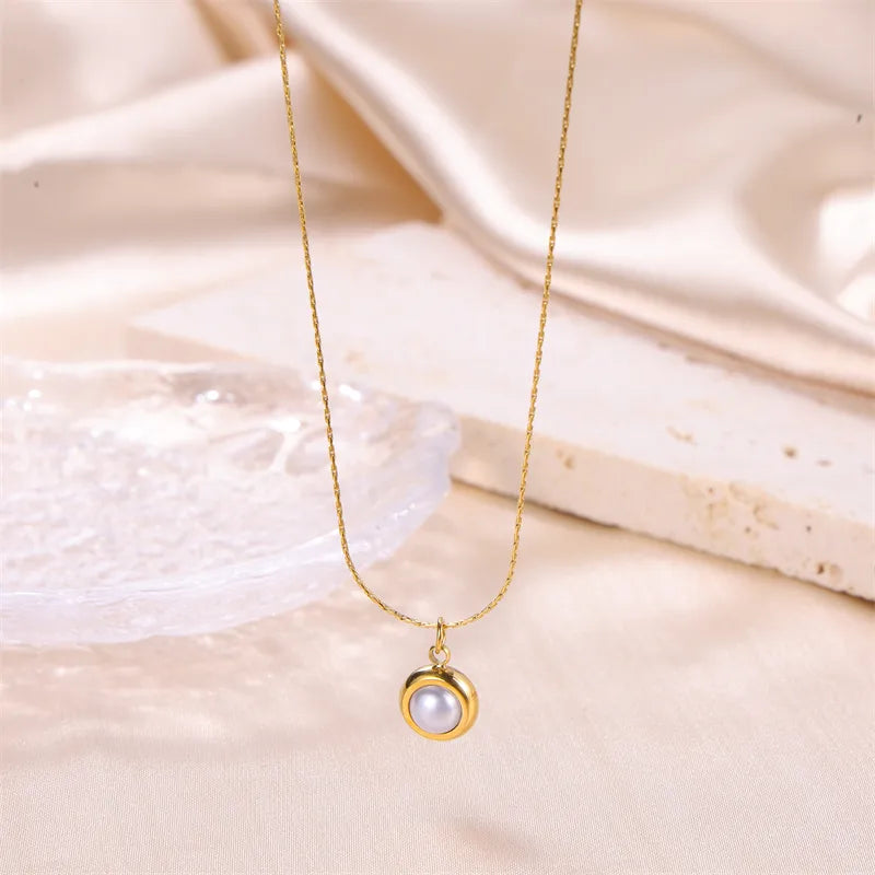 This stunning necklace features a lustrous pearl encased in a polished gold bezel setting, suspended delicately on a slender gold chain. The classic combination of pearl and gold exudes a sense of luxury that enhances any ensemble, making it perfect for both everyday wear and special occasions.
