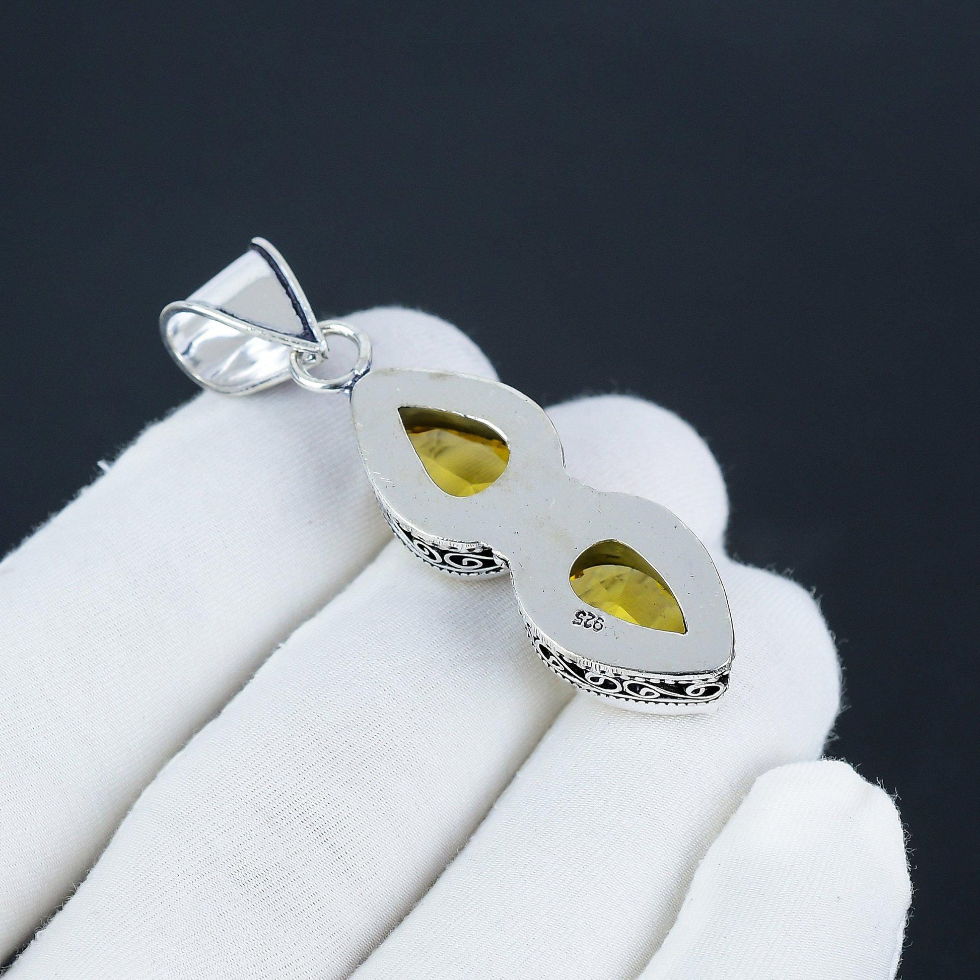 Discover the elegance and allure of our exquisite double yellow gemstone pendant, beautifully crafted to capture attention. This stunning piece, featuring pear-shaped stones, is set in intricately designed silver, providing a timeless yet contemporary look.